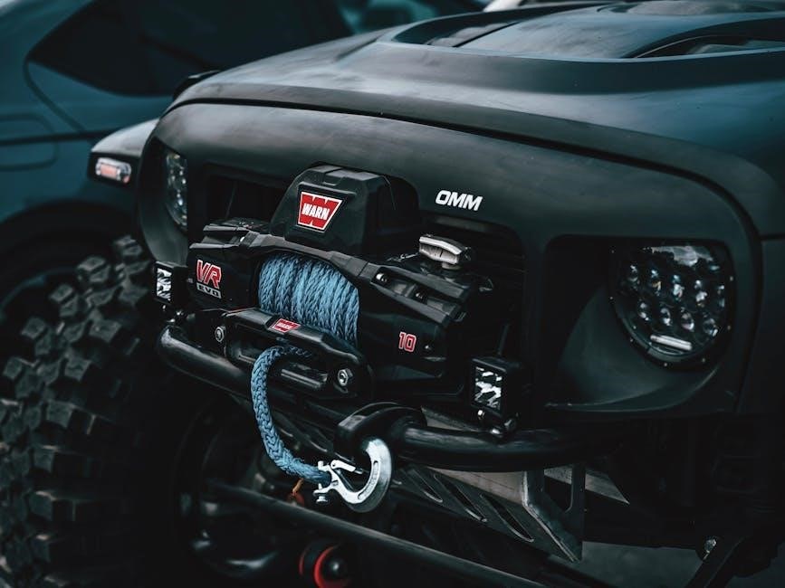 It provides a comprehensive guide to troubleshooting common issues, including motor malfunctions and cable spooling problems․ Diagrams illustrate key components and assembly steps․ Understanding the manual’s warnings and guidelines prevents damage to the winch and ensures user safety․ ManualsLib offers a downloadable version for convenient access, ensuring you have vital information readily available․